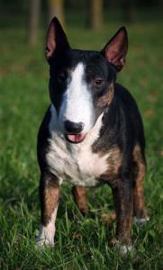 | Plemeno: | miniaturní bulteriér | Barva srsti: | černá s žíháním, bílé znaky, krátká |