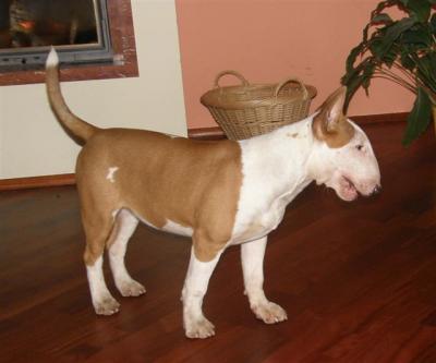| Plemeno: | bulteriér | Barva srsti: | červená, bílé znaky, krátká |