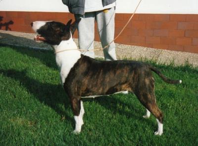 | Plemeno: | bulteriér | Barva srsti: | žíhaná, bílé znaky, krátká |