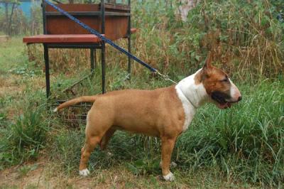 | Plemeno: | miniaturní bulteriér | Barva srsti: | červená, bílé znaky, krátká |
