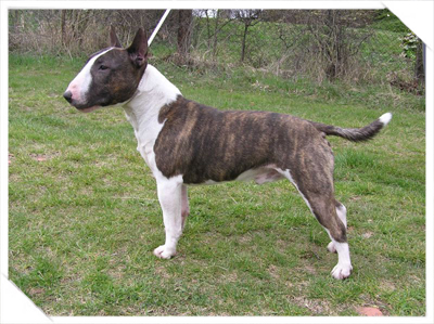 | Plemeno: | miniaturní bulteriér | Barva srsti: | žíhaná, bílé znaky, krátká |