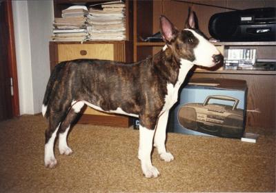 | Plemeno: | bulteriér | Barva srsti: | žíhaná, bílé znaky, krátká |