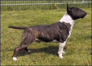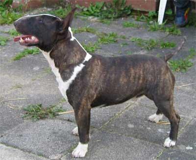 | Plemeno: | miniaturní bulteriér | Barva srsti: | žíhaná, bílé znaky, krátká |
