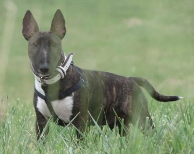 | Plemeno: | miniaturní bulteriér | Barva srsti: | žíhaná, bílé znaky, krátká |