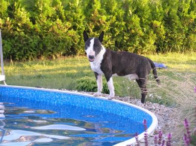 | NELA ze Slezska bulteriér, bílá | ADAR z Údolí sýčků bulteriér, žíhaná, bílé znaky | |