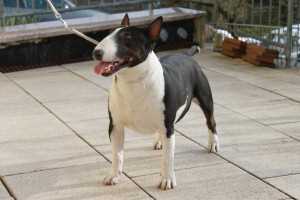 | Plemeno: | miniaturní bulteriér | Barva srsti: | černá s žíháním, bílé znaky, krátká |