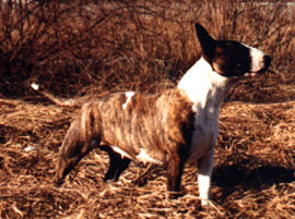 | Plemeno: | miniaturní bulteriér | Barva srsti: | žíhaná, bílé znaky, krátká |