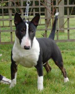 | Plemeno: | miniaturní bulteriér | Barva srsti: | černá s žíháním, bílé znaky, krátká |