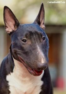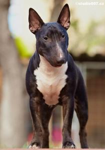 | Plemeno: | miniaturní bulteriér | Barva srsti: | černá s žíháním, bílé znaky, krátká |