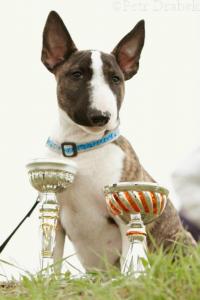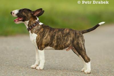 | Plemeno: | miniaturní bulteriér | Barva srsti: | žíhaná, bílé znaky, krátká |