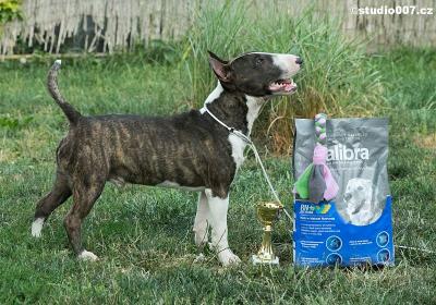 | Plemeno: | miniaturní bulteriér | Barva srsti: | žíhaná, bílé znaky, krátká |