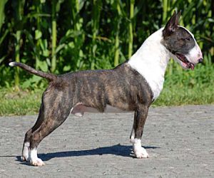 | Plemeno: | miniaturní bulteriér | Barva srsti: | žíhaná, bílé znaky, krátká |