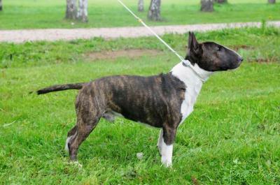 | Plemeno: | miniaturní bulteriér | Barva srsti: | žíhaná, bílé znaky, krátká |