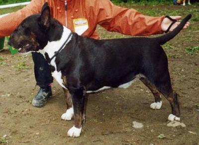 | Plemeno: | bulteriér | Barva srsti: | černá s žíháním, bílé znaky, krátká |