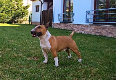 | Plemeno: | miniaturní bulteriér | Barva srsti: | červená, bílé znaky, krátká |