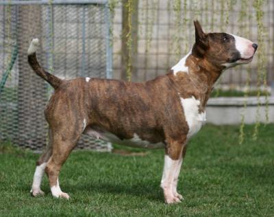 | SAVANNAH of Canterbury bulteriér, bílá se znakem/znaky | SEA COVE Alet bulteriér, žíhaná, bílé znaky | |