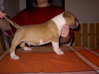 | Plemeno: | bulteriér | Barva srsti: | červená, bílé znaky, krátká |