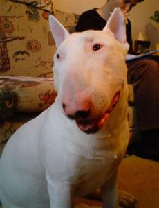 | Plemeno: | bulteriér | Barva srsti: | bílá se znakem/znaky, krátká |