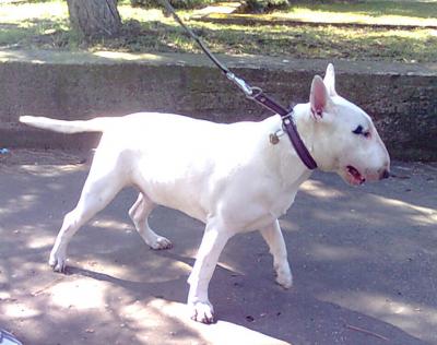 | Plemeno: | bulteriér | Barva srsti: | bílá se znakem/znaky, krátká |