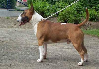 | Plemeno: | bulteriér | Barva srsti: | červená, bílé znaky, krátká |