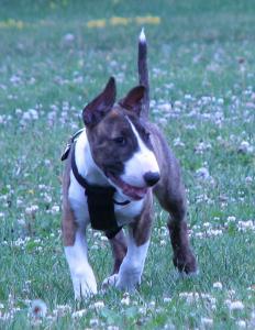 | Plemeno: | bulteriér | Barva srsti: | žíhaná, bílé znaky, krátká |