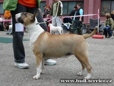 | Gimar LADY HAWK OVER Llanwenarth bulteriér, žíhaná, bílé znaky | Apache BRAVE of Kilacabar bulteriér, bílá se znakem/znaky | |