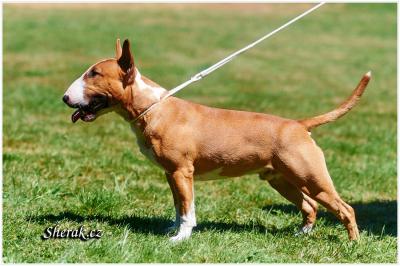 | Plemeno: | miniaturní bulteriér | Barva srsti: | červená, bílé znaky, krátká |