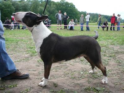 | Plemeno: | bulteriér | Barva srsti: | černá s žíháním, bílé znaky, krátká |