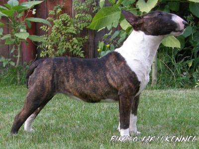 | Bikató-Parti HAPPY-PIXIE | fena | miniaturní bulteriér | žíhaná, bílé znaky |
