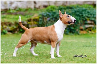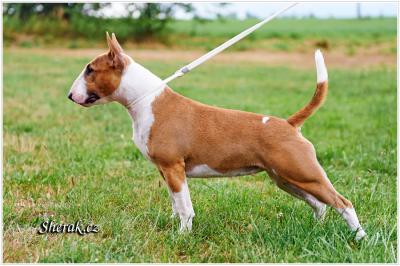 | Plemeno: | miniaturní bulteriér | Barva srsti: | červená, bílé znaky, krátká |