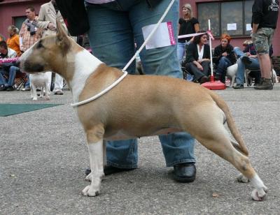 | Plemeno: | bulteriér | Barva srsti: | červená, bílé znaky, krátká |