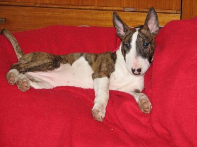 | Plemeno: | bulteriér | Barva srsti: | žíhaná, bílé znaky, krátká |