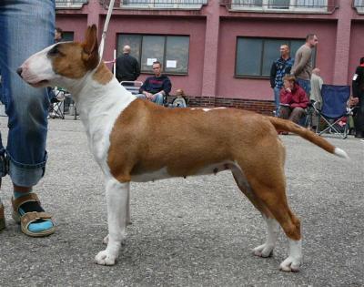 | Plemeno: | bulteriér | Barva srsti: | červená, bílé znaky, krátká |