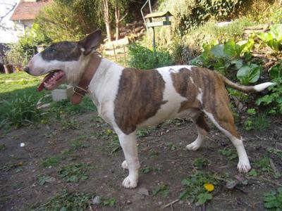 | Plemeno: | bulteriér | Barva srsti: | žíhaná, bílé znaky, krátká |