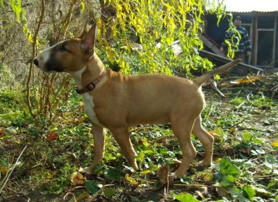 | Plemeno: | bulteriér | Barva srsti: | červená, bílé znaky, krátká |