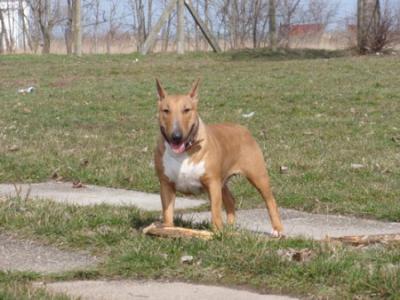 | Plemeno: | bulteriér | Barva srsti: | červená, bílé znaky, krátká |