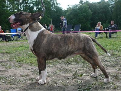 | Plemeno: | bulteriér | Barva srsti: | žíhaná, bílé znaky, krátká |