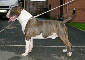 | Plemeno: | bulteriér | Barva srsti: | žíhaná, bílé znaky, krátká |