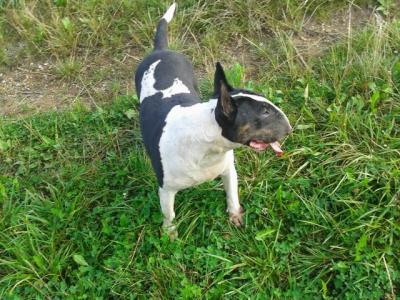 | Plemeno: | bulteriér | Barva srsti: | černá s žíháním, bílé znaky, krátká |