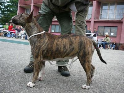 | Plemeno: | bulteriér | Barva srsti: | žíhaná, bílé znaky, krátká |