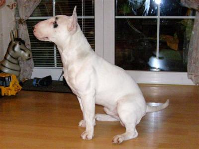 | Plemeno: | bulteriér | Barva srsti: | bílá se znakem/znaky, krátká |