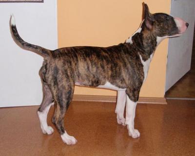 | Plemeno: | bulteriér | Barva srsti: | žíhaná, bílé znaky, krátká |