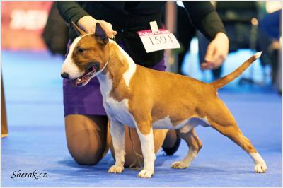 | Plemeno: | miniaturní bulteriér | Barva srsti: | červená, bílé znaky, krátká |
