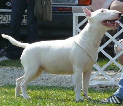 | Plemeno: | bulteriér | Barva srsti: | bílá se znakem/znaky, krátká |
