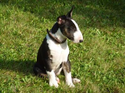 | Plemeno: | bulteriér | Barva srsti: | černá s žíháním, bílé znaky, krátká |