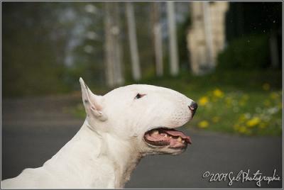| Plemeno: | bulteriér | Barva srsti: | bílá se znakem/znaky, krátká |