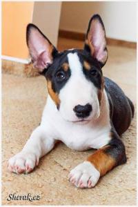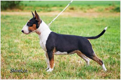 | Plemeno: | miniaturní bulteriér | Barva srsti: | trikolor, bílé znaky, krátká |