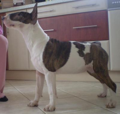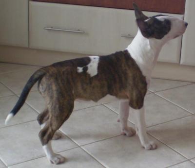 | Plemeno: | bulteriér | Barva srsti: | žíhaná, bílé znaky, krátká |