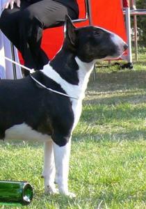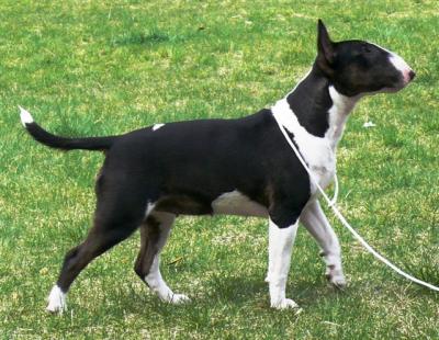| Plemeno: | bulteriér | Barva srsti: | černá s žíháním, bílé znaky, krátká |