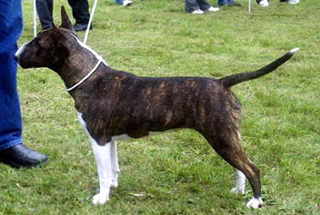 | Plemeno: | miniaturní bulteriér | Barva srsti: | žíhaná, bílé znaky, krátká |